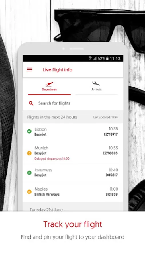 - Personalise the homepage with your flight details