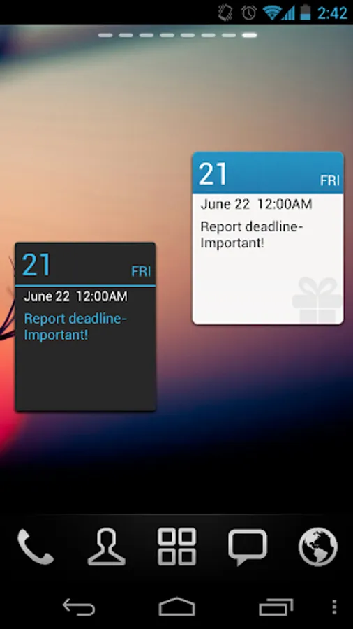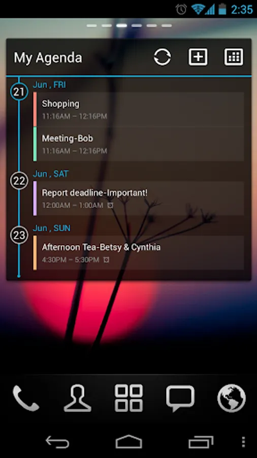 GO Calendar widget brings the calendar and the agenda to your home screen. It was a great calendar that makes your calendar more simple and faster.You can use month view or agenda view to display your upcoming events. At the same time, It supports showing Chinese Lunar and Moon phase.