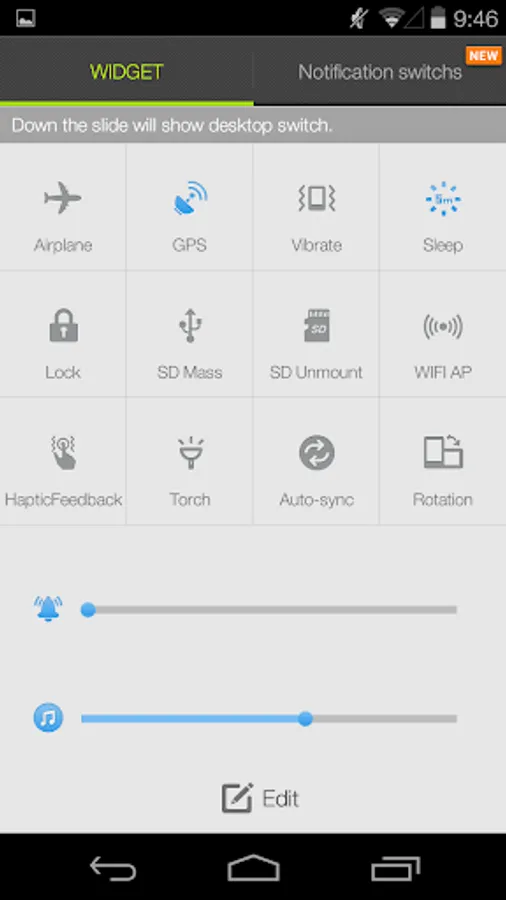 Moreover, Notification widget is available now! You can turn on/off the functions in common use anywhere.