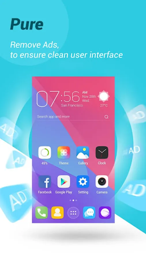 Download GO Launcher EX first to enjoy 10,000+ personalized themes, fancy transition animations and experience the super speedy and smooth operation provided by powerful 3D core!