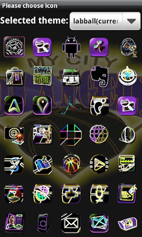 Purple and Gold basketball theme for GO Launcher EX - Neon edition is simply unique. Do you like purple and gold colors combine with neon basketball icons? Then you will love the features like Custom purple and gold My City Los Angeles wallpapers, neon market with basketball jersey, jumbotron scoreboard home button, clock with trophy, camera with basketball court, gallery with trophy and lots of cool icons. All with neon effects. Enjoy.