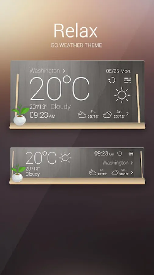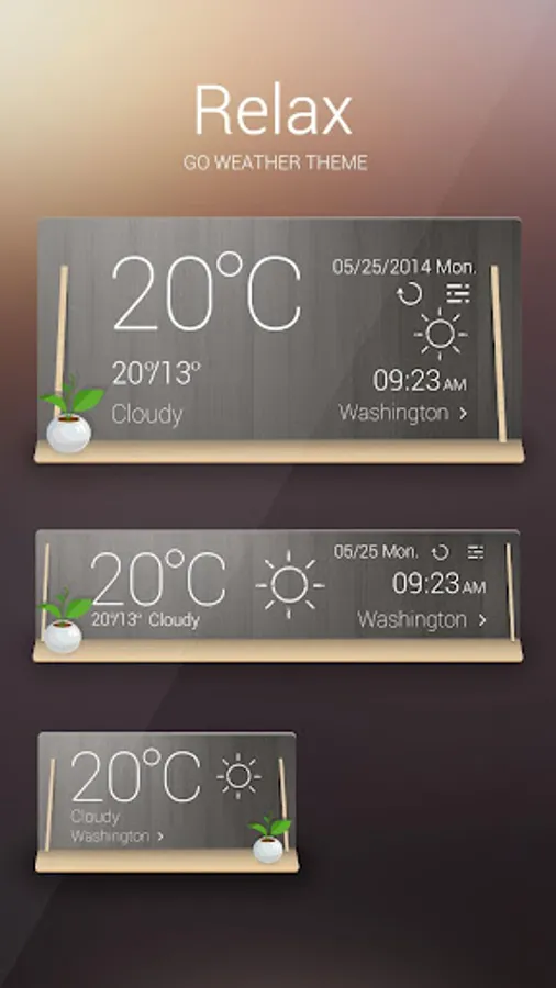 Relax Theme supports 4*1, 4*2, 2*1 sizes. It delivers the most accurate weather information from anywhere at any time.