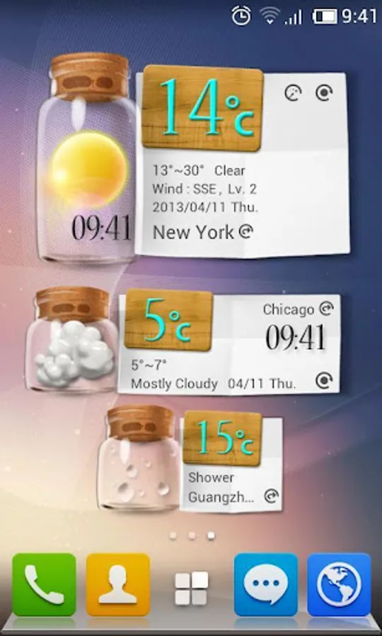 Bottle GO Weather EX Theme supports 4*1, 4*2, 2*1 sizes. It delivers the most accurate weather information from anywhere at any time.