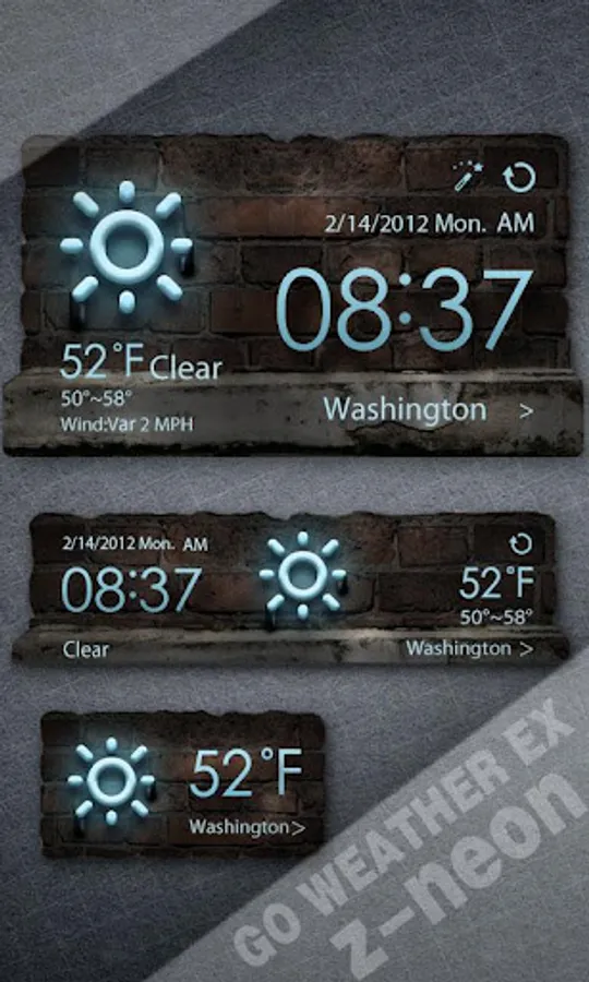 Z-Neon Theme, supports 4*1, 4*2, 2*1 sizes. It delivers the most accurate weather information from anywhere at any time.
