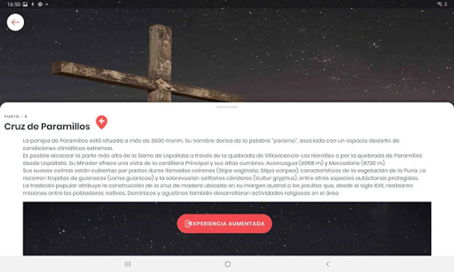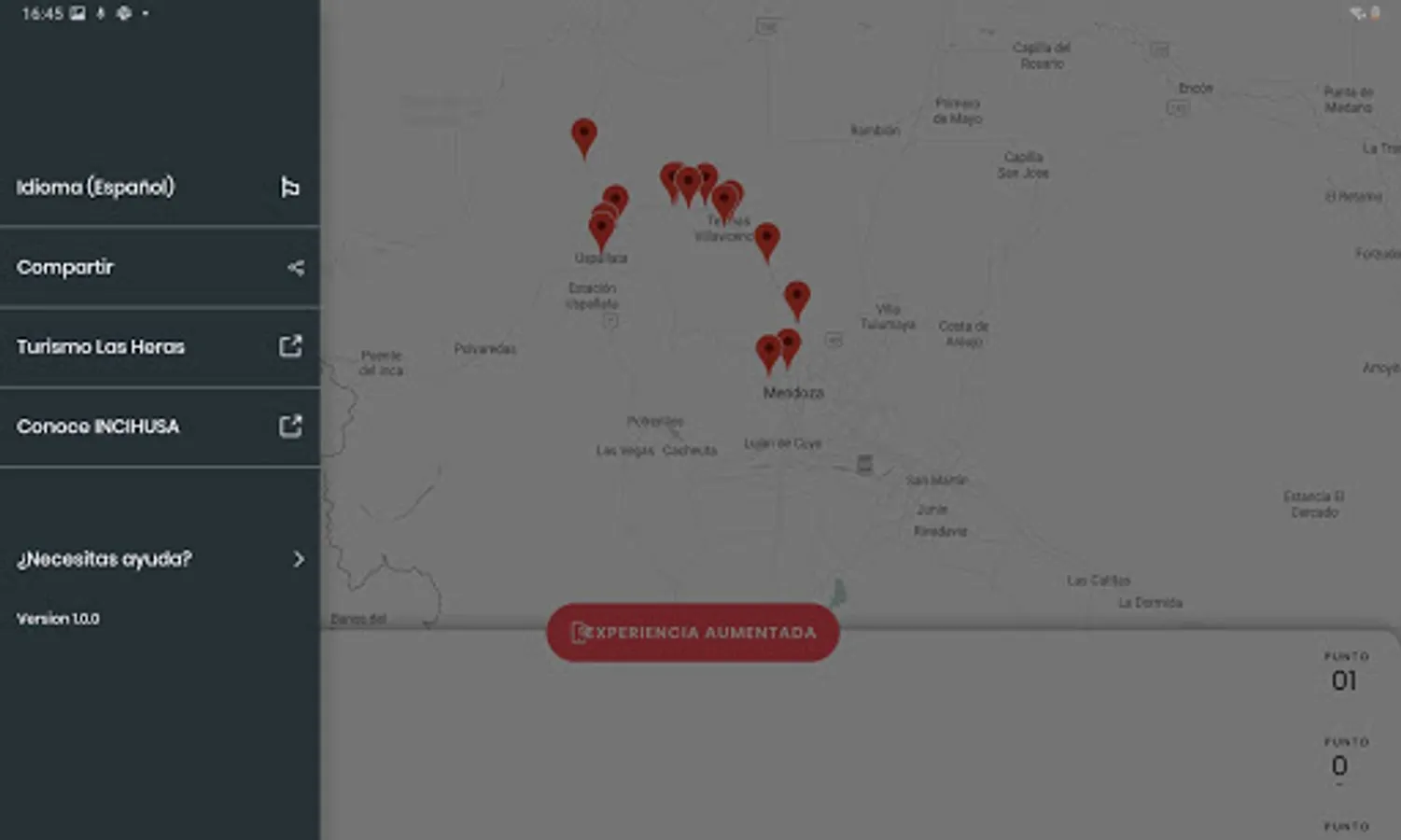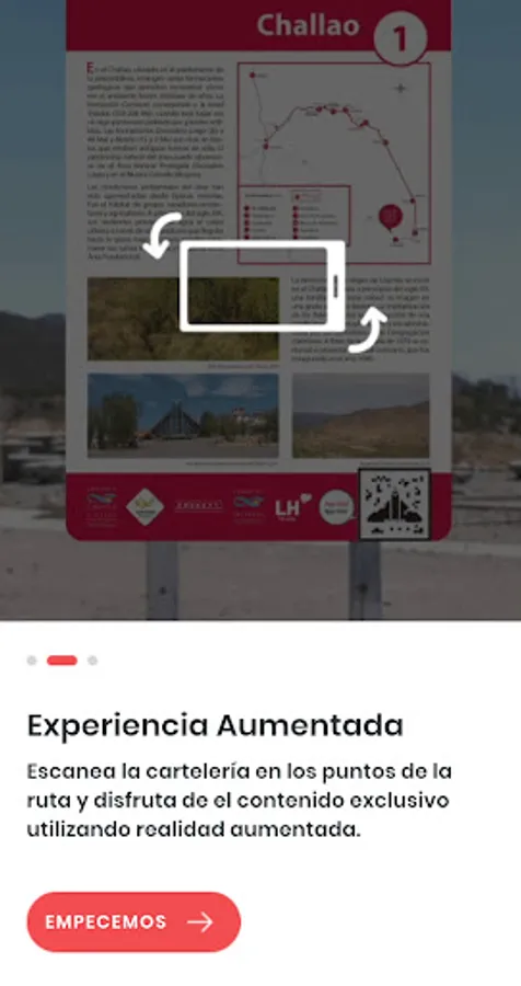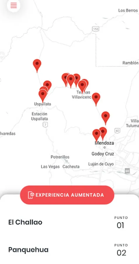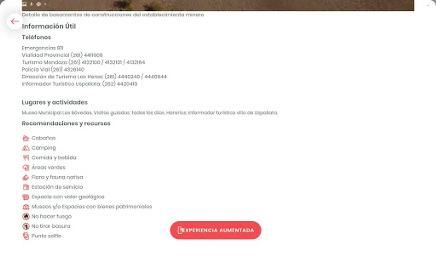 Enjoy and enhance your tourist experience with augmented reality. Access exclusive information, images and virtual audio guides of the 14 tourist spots on Route 52 in Las Heras, Mendoza, Argentina. Focus with your camera the QRs printed on each of the posters and discover the maps in 3D and videos with augmented reality.