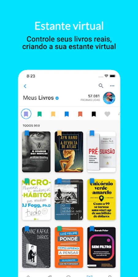 HAVE A GOOD TIME!! Skoob is the best and most complete application for those who want to take their books off their bedside and read more by organizing their readings.