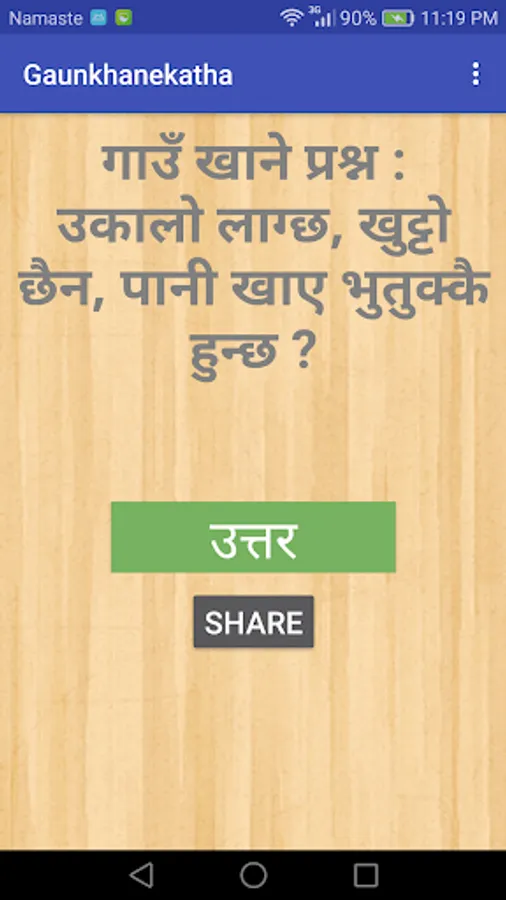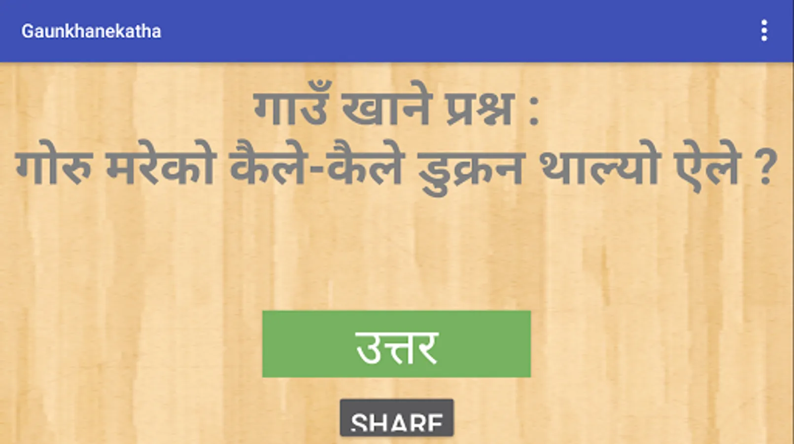 Gaun Khane Katha is a android application that consists of set of hints as question to be answered. The question is asked with logical hints consisting of its attributes.