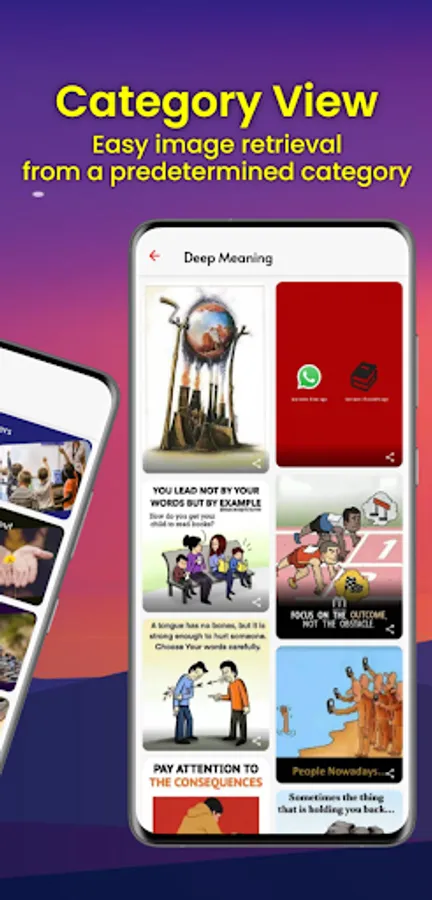 Easily explore quotes based on various categories, including success, perseverance, positivity, self-belief, love, happiness, and more. Find the quotes that resonate with your current needs and share them with friends and family to spread positivity.