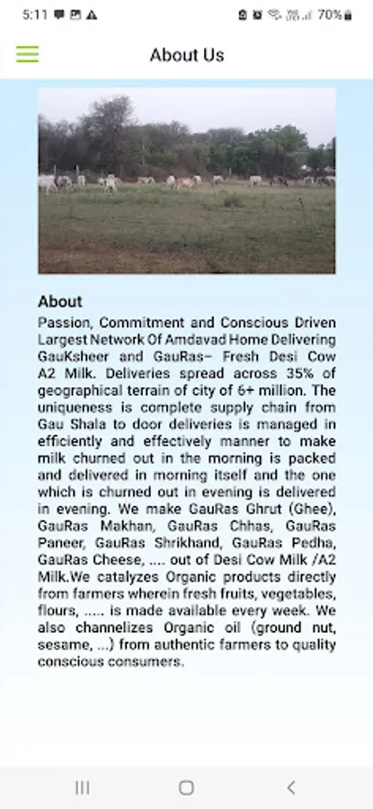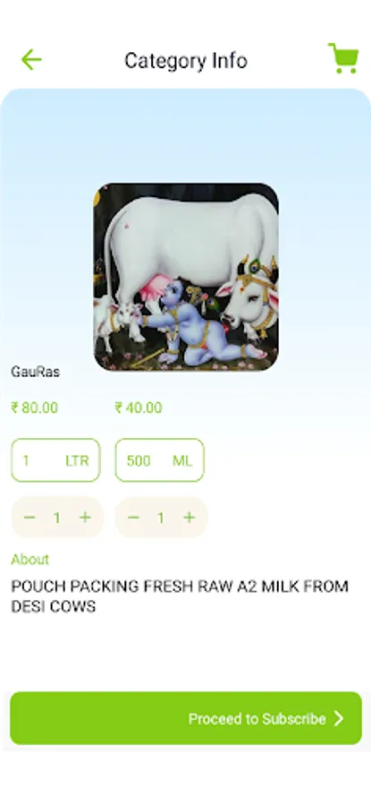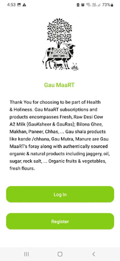 This is handy platform to be part of journey of Health & Holiness. This app enables to subscribe and order Gau MaaRT products encompassing Fresh, Raw Desi Cow A2 Milk (GauKsheer & GauRas); Bilona Ghee, Makhan, Paneer, Chhas, ... Gau shala products like kande /chhana, Gau Mutra, Manure which are Gau MaaRT's foray along with authentically sourced organic & natural products including jaggery, oil, sugar, rock salt, ... Organic fruits & vegetables, fresh flours.