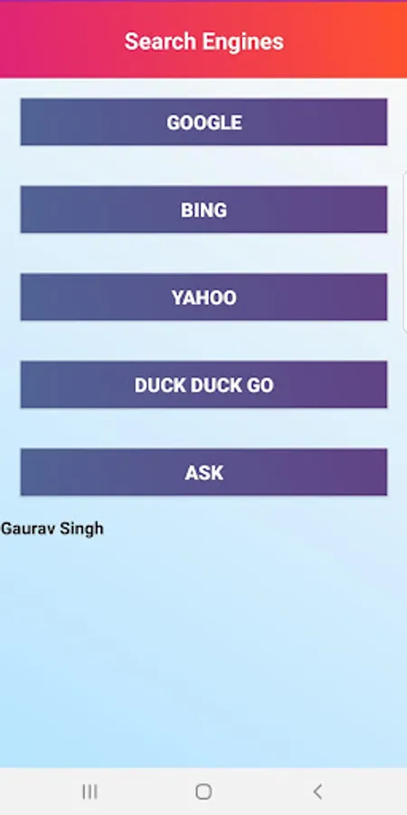 This App is used to Search with all top search engines in the worlds at one place in one app.