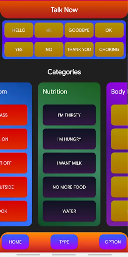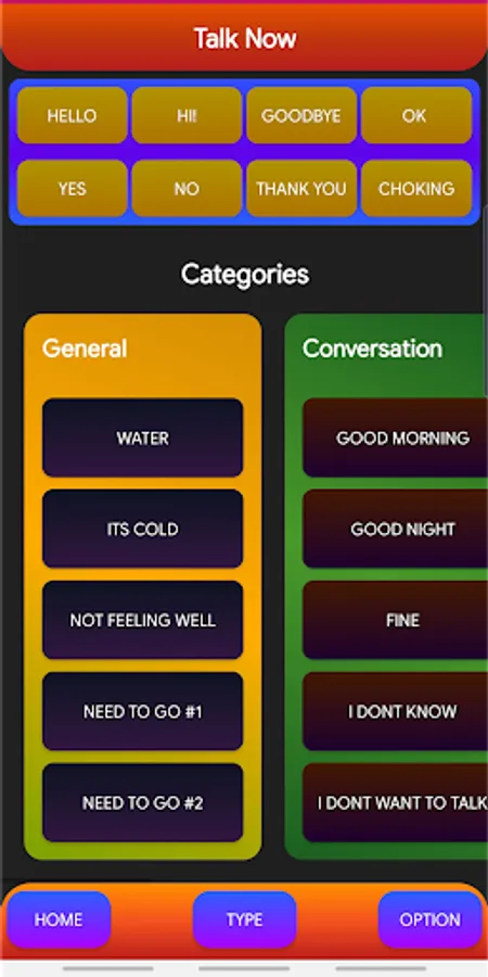 There are many predefined phrase that you can tap to have spoken. Talk now comes pre-loaded with common phrase and categories.