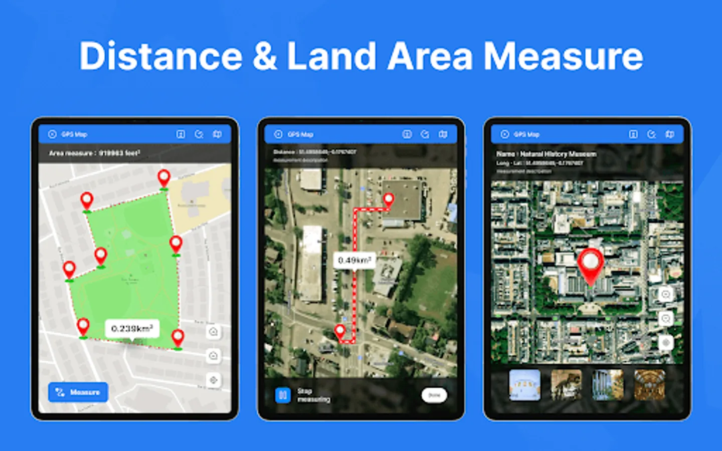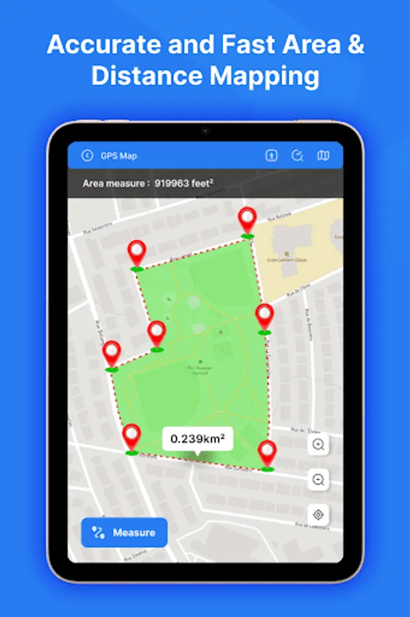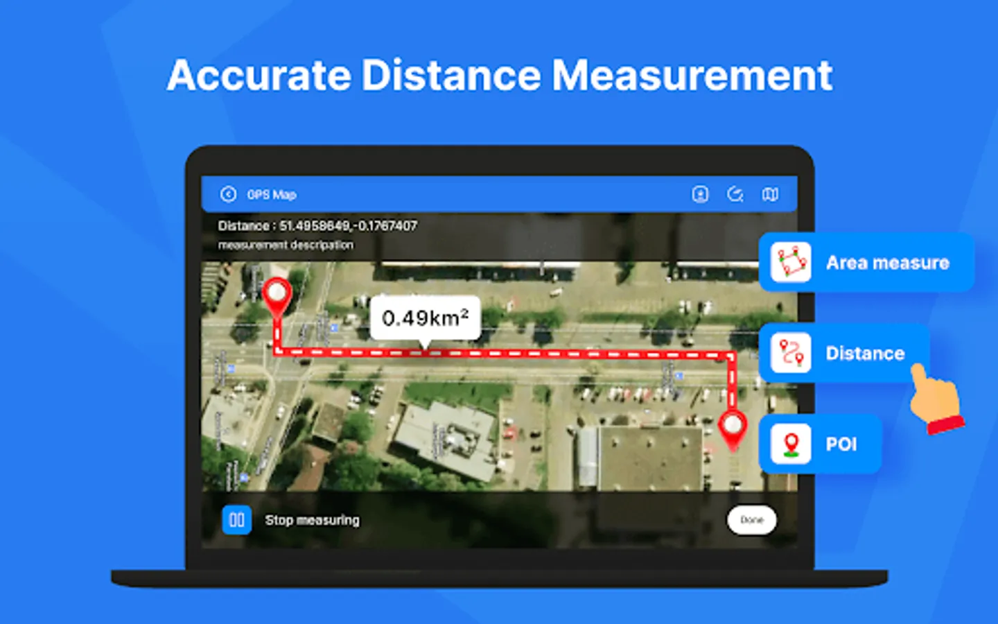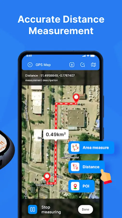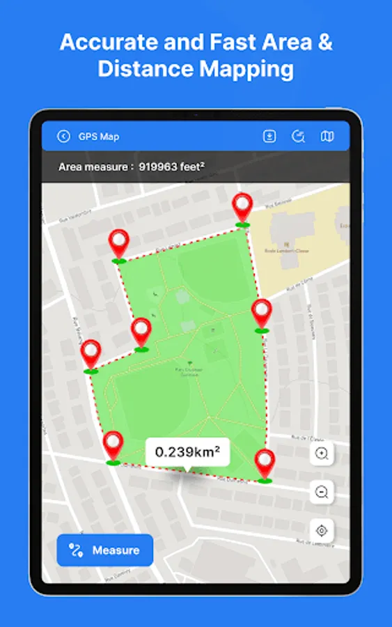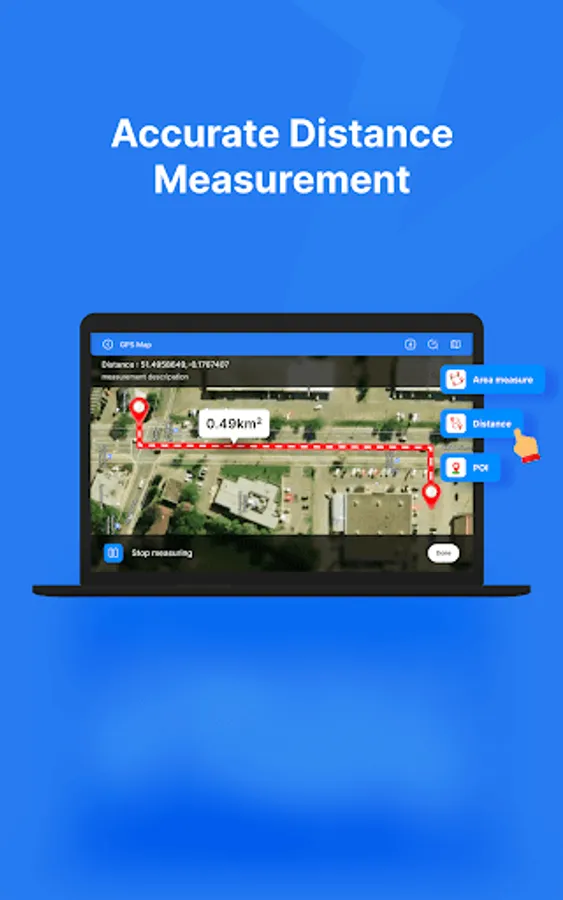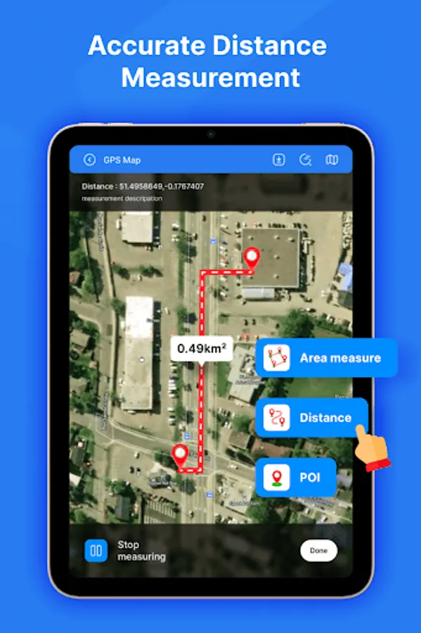 Distance & Land Area Measure app is useful to calculate GPS area and GPS distance with great accuracy. You can use POI to specific point locations. It is fast, simple, and easy to use. You can calculate measurements by GPS measurement and manual measurement.