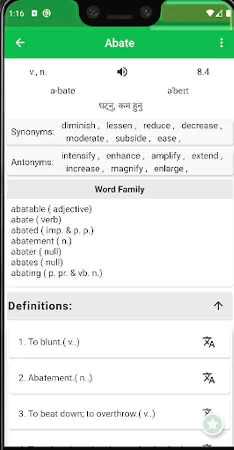 6. Display the formation of root words by which the user can learn 5 to 25 or more words by learning root meaning.
