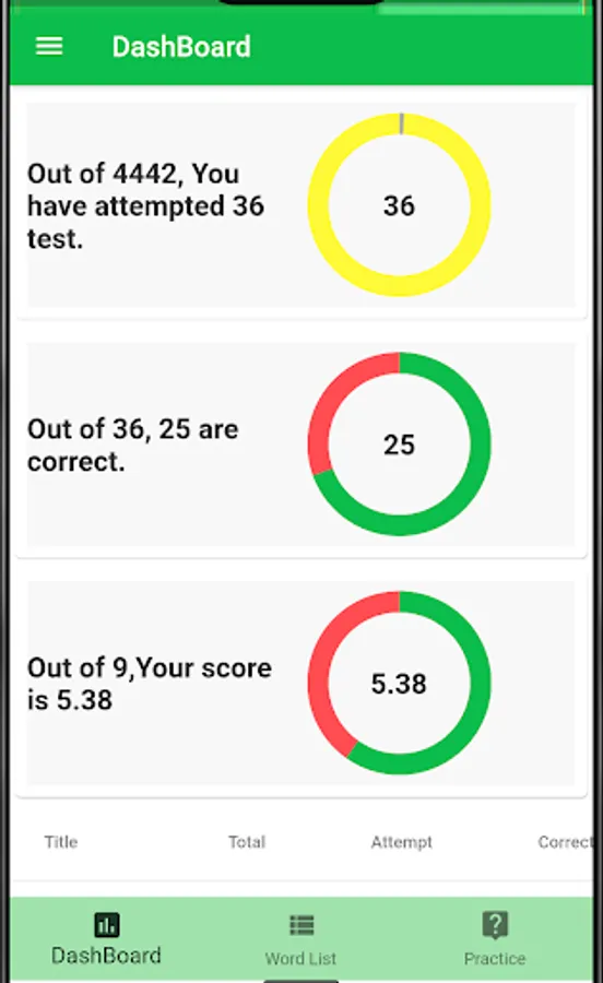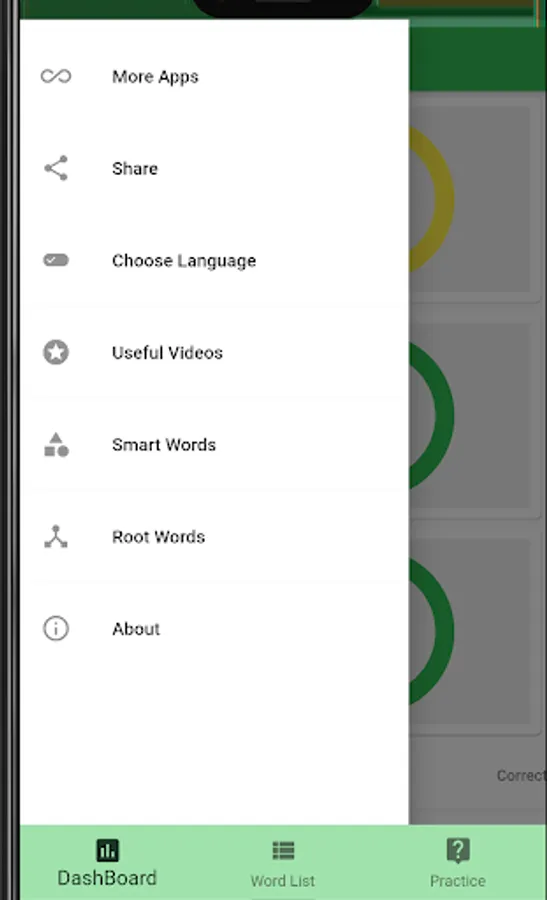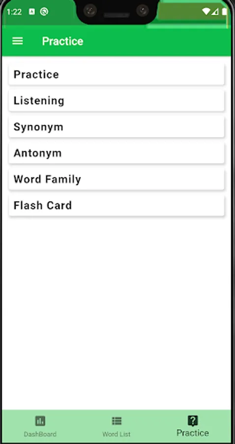 3. Users can practice by using random or some specific categories like nouns, verbs, adjectives, favorite words, learned words, frequent mistakes.