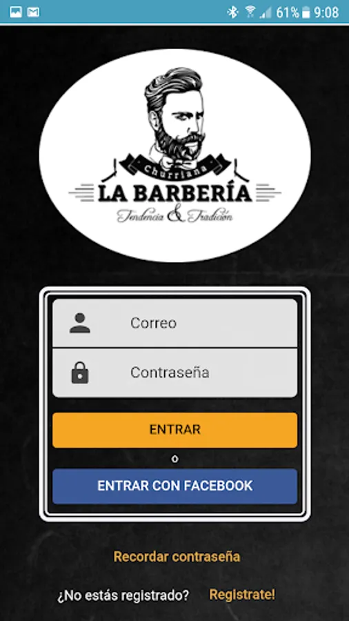 App Barbershop Churriana, where customers can book an appointment for haircut and beard fix, easily and quickly. In just three steps you can book. Only must register or through their Facebook account.