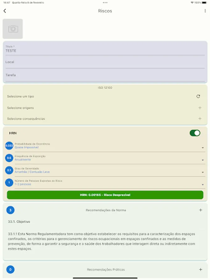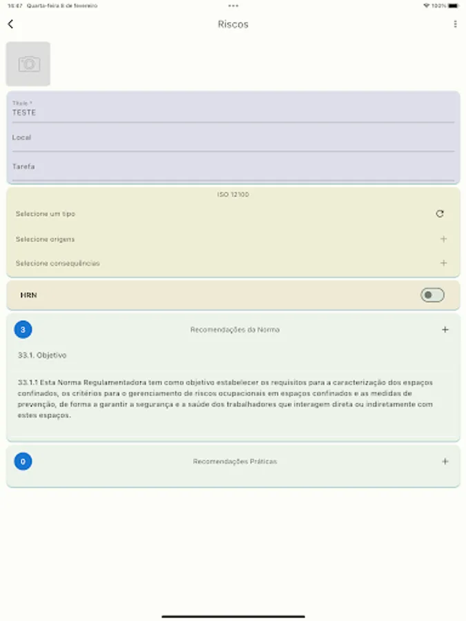 The application is part of a set of solutions connected to the Gáutica platform, for registration, risk analysis, reports such as safety inspections and technical reports. In this it is possible to register the confined spaces, inform the location on the map, carry out risk and hazard analyzes in accordance with ISO 12100 and HRN (Hazard Rating Number) and generate action plans to adapt these spaces, in accordance with NR- 33.