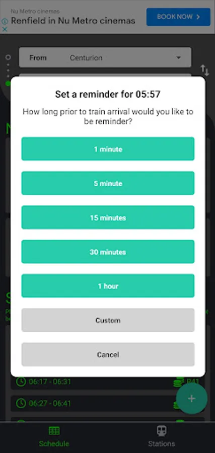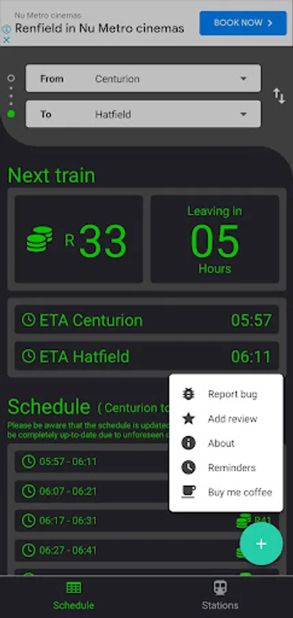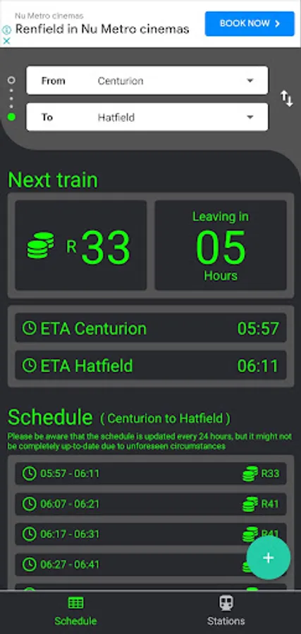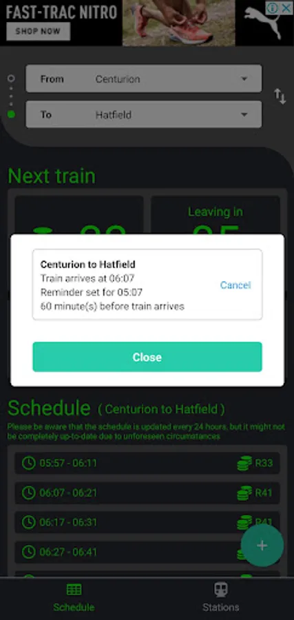 View Gautrain schedule with ease, auto-save preferred schedule & set train arrival reminders