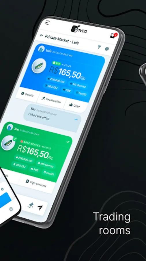 Gavea Private Market, your private blockchain marketplace. Your exclusive platform to chat, price and trade with your clients and suppliers, private and secure, with products’ traceability and ESG checks.