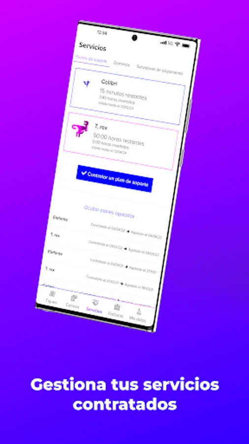 Contract new services, check your invoices, create new email accounts and let us know your incidents. These are just some of the features that you can manage from Hola Gavisa, our application to be by your side 24/7.