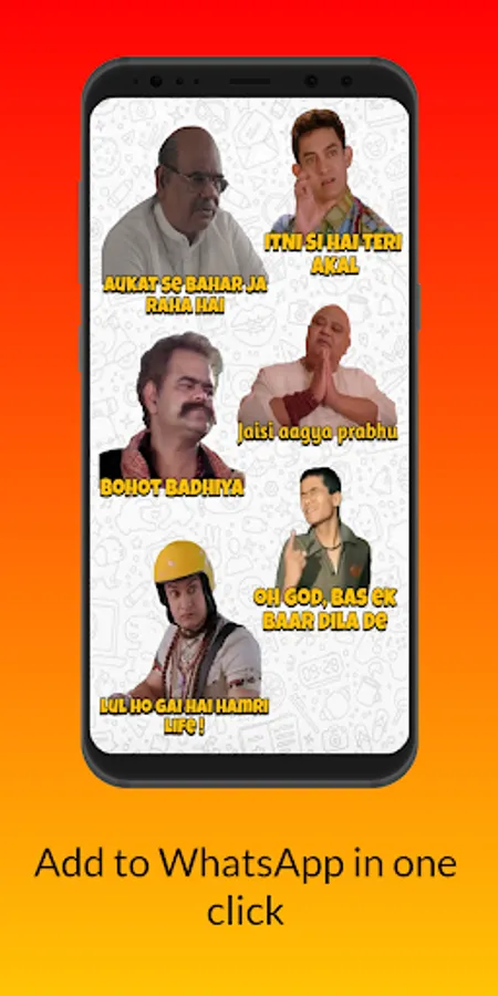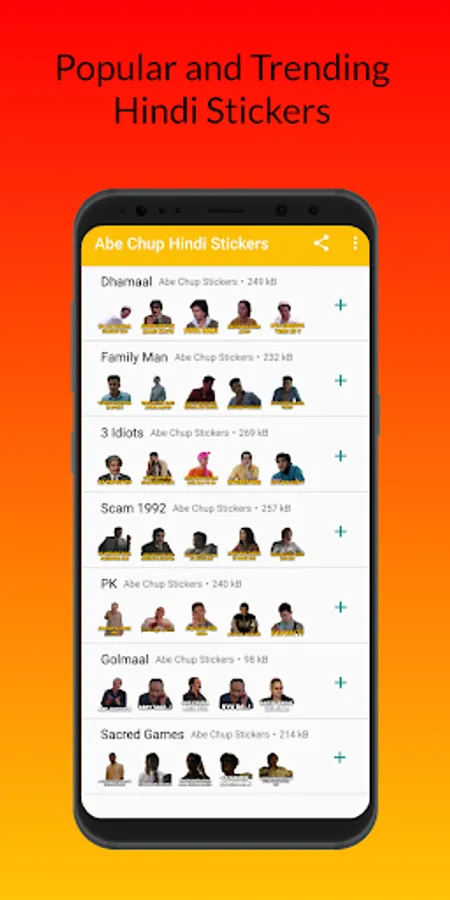 Express your emotions through stickers in our Abe Chup Hindi Stickers app. You can now use cool stickers rather than usual text and emoji to reply friends and family, even statuses.