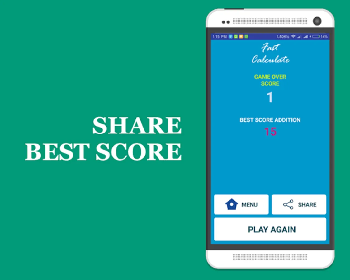 Fast Calculate is a simple game that trains you to calculate quickly, equipped with multiple choice, and time limit of each question. Reach as much value and share results with your friends.