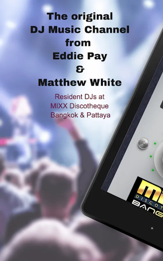 Turn on the radio and enjoy the unique sound of Eddie Pay & Matthew White, resident DJs at MIXX Discotheque Bangkok and Pattaya. This radio app connects you with their official DJ radio channel. Stay tuned and listen to all their songs, live DJ sessions and interviews with well known DJs from around the world.