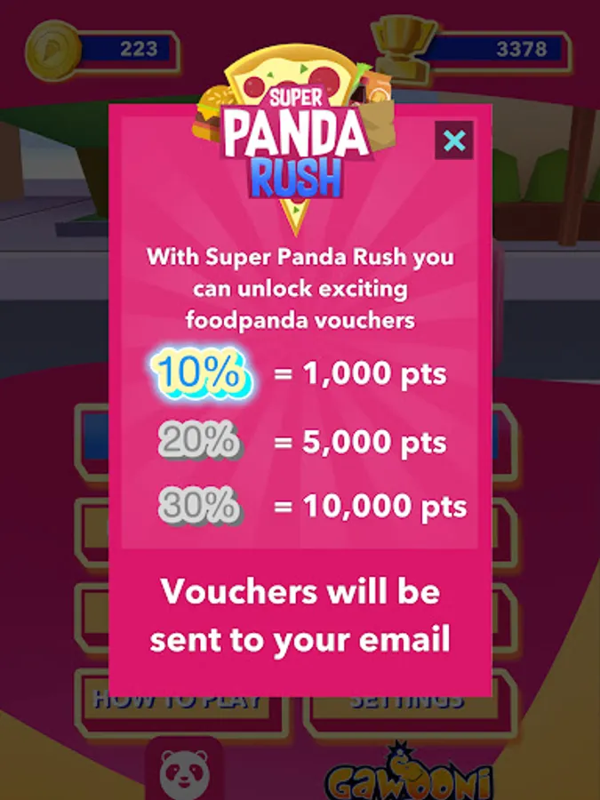 Super Panda Rush is a fun rider game by foodpanda. Jump on your motorbike, climb the leaderboard and score foodpanda vouchers, special offers and even receive event invites. How far can you make it?