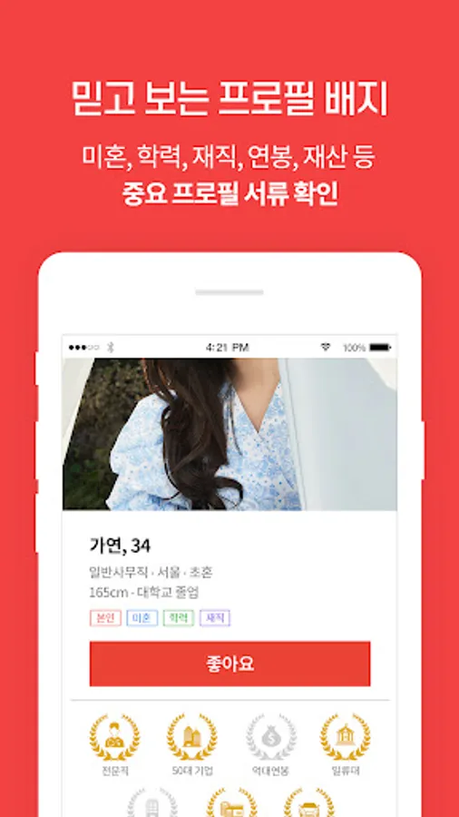 Members whose documents have been verified such as education, job, salary, and single status can be classified by badge.