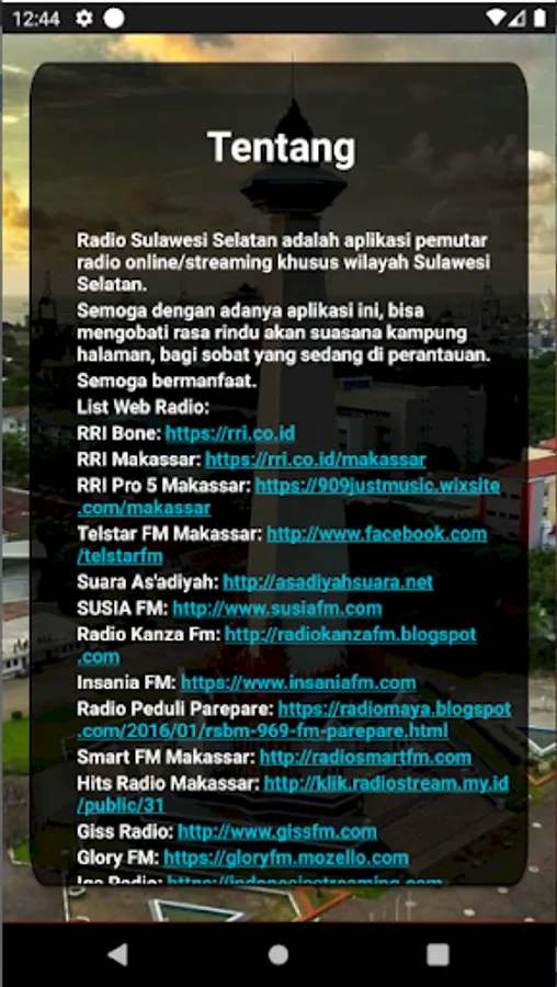 Radio South Sulawesi is a Radio Streaming Application specifically for listening to South Sulawesi Radio, including RRI and several South Sulawesi Local Radios, this application is lightweight and can run on low-end and high-end devices.