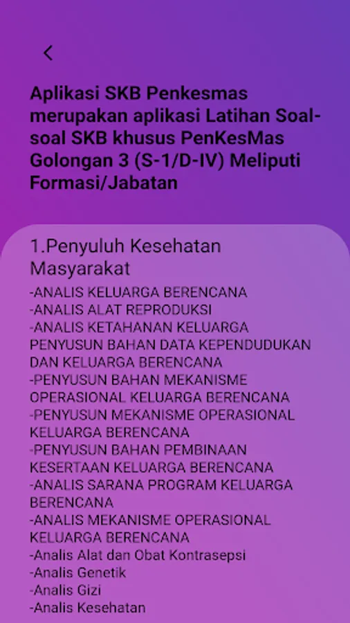 The application for the SKB CPNS Practice Questions for the Public Health Instructor Clump is an application for the Practice Questions for the CPNS SKB specifically for the Group 3 (S-1/D-IV) Public Health Counselors, covering formations/positions
