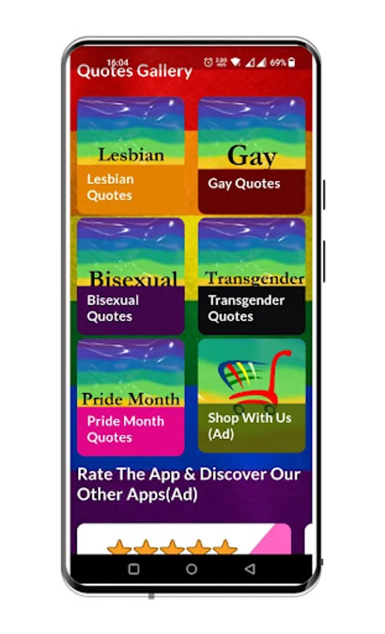 Express yourself with the 'LGBTQ+ Wallpapers & Quotes' app, the ultimate destination for anyone looking for vibrant and inspiring wallpapers and quotes that celebrate the LGBTQ+ community. Whether you're looking for bold and colorful designs or more subtle and understated options, our app has something for everyone.