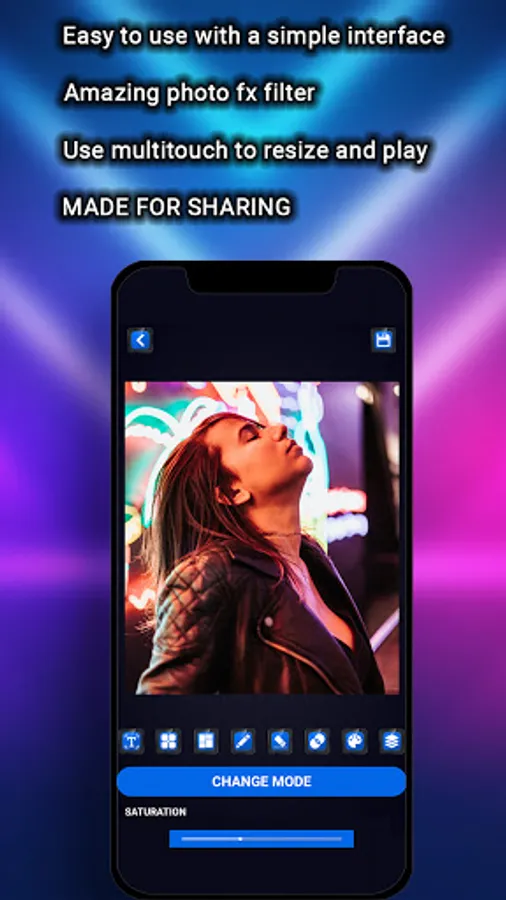 NeonArt picture editor has all the picture editing tools to create fabulous artworks. No crop is needed to share your brilliant pic on social media. NeonArt photo editor offers you the best photo editing experience with dozens of neon effects and neon spirals.