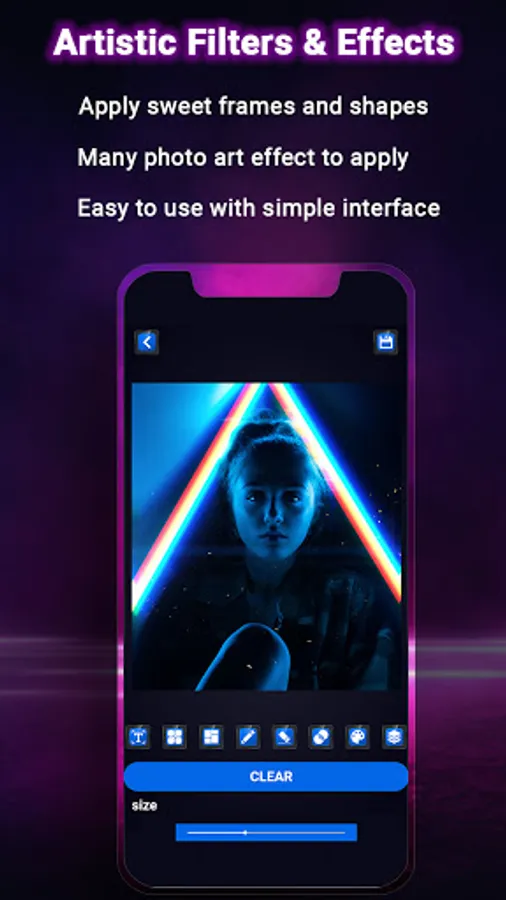 Neon Effect - Photo Editor comes with Neon Draw tool using which you can draw on photos with neon colors. Draw using a brush, Paint objects on the photo. This cool feature is not like the normal paint art and text art editors. Neon Effect has Neon Magic Drawing tool so you can draw anything or learn how to draw with fun neon colors.