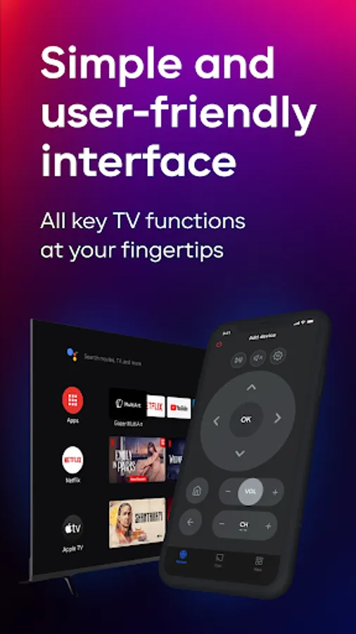 Easily control your TV with a simple and intuitive interface. No more searching for lost remotes, use your phone to navigate TV channels, adjust volume, and even gaming.