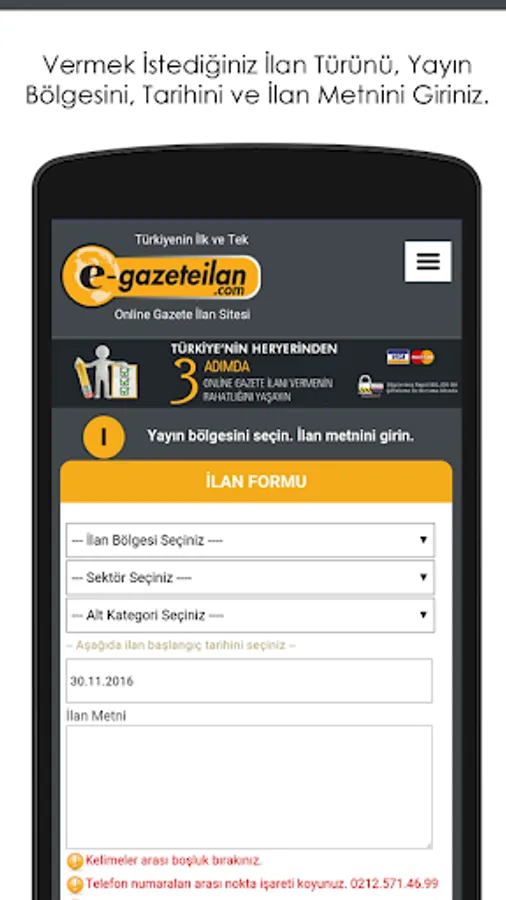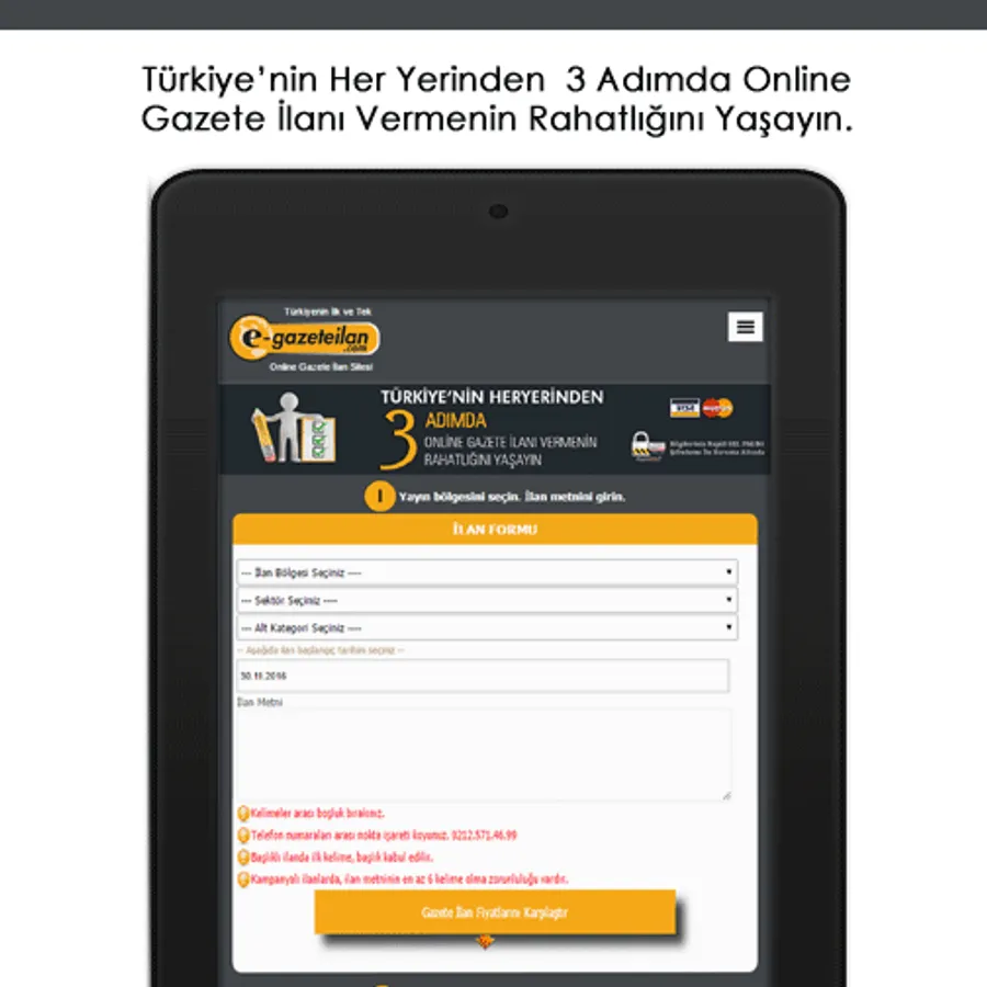 Our company operates as Hürriyet service announcement; Hurriyet element to the ads, you can immediately follow the declaration of elements necessary steps. Hurriyet members declared that the newspaper will be published on the day you want the freedom classifieds page. Hurriyet newspaper ad campaign staff; Engineers and Health element column 2 release 3 broadcast is free, all the other elements of the classified columns are broadcast free 2 5 broadcast. classifieds ads published in Hürriyet page elements, especially white-collar gives quick results in advertising.