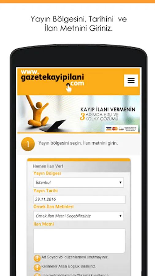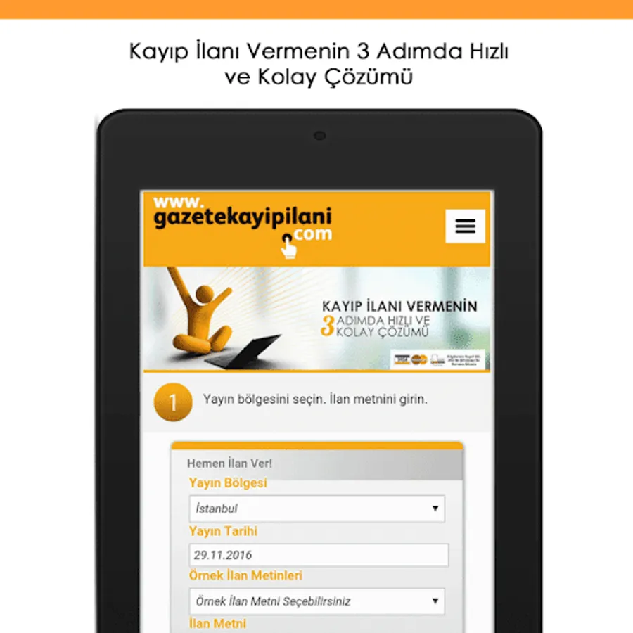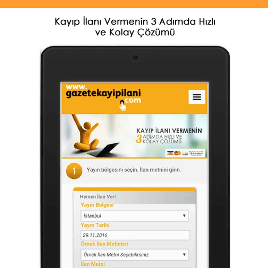 Hurriyet newspaper advertisement to losses, with 3 steps you want to practice our newspaper and follow the steps in the form of advertising by credit card on the date you want, you can place your ad quickly and easily wasted. If you want to give freedom to the newspaper declared lost You may post ad in making payments through our website.