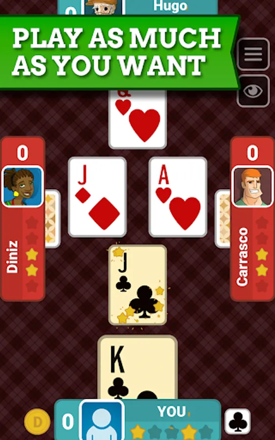 Download our Euchre free multiplayer online or single-player offline and get ready for hours of fun with this classic trickster game.