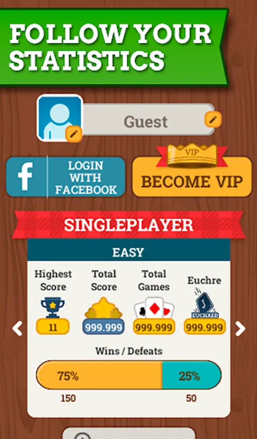 - Euchre Online Trickster Cards has 3d ifficulty levels: choose between easy, medium, and hard.