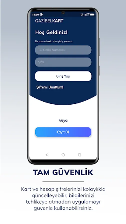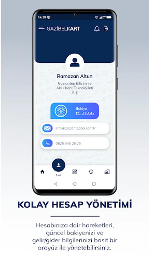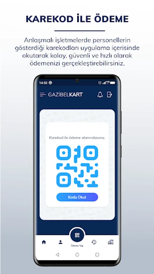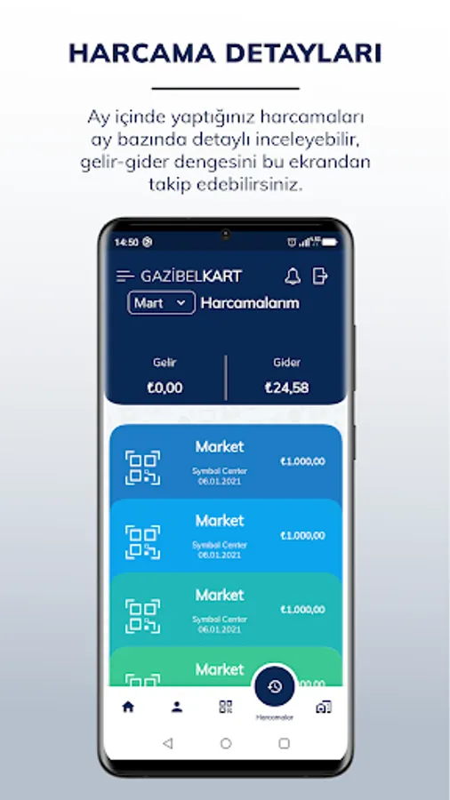 It is a mobile application that will enable the personnel of the institution to pay with the personnel cards they use, as well as to pay with the QR code. The user can query his/her balance, check account information and follow all movements through the GaziBel Card application.