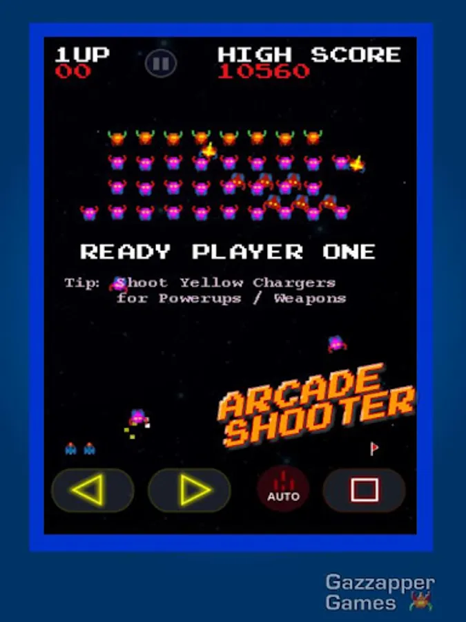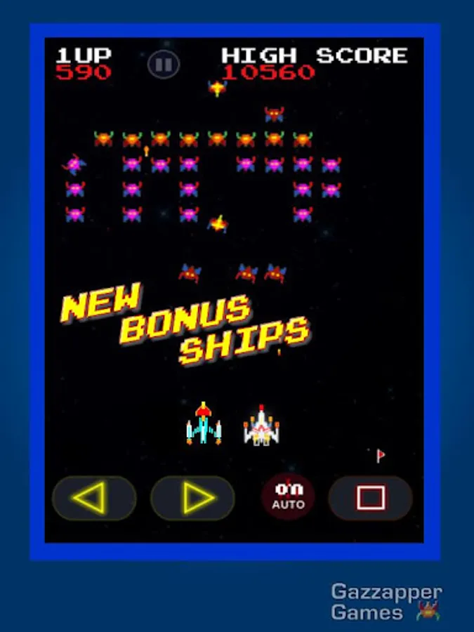 Collect bonus power-ups and use them to destroy the attacking groups of aliens. Get this retro space shooter for classic gaming fans.