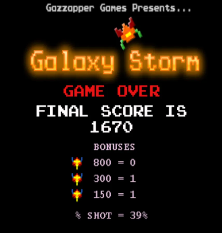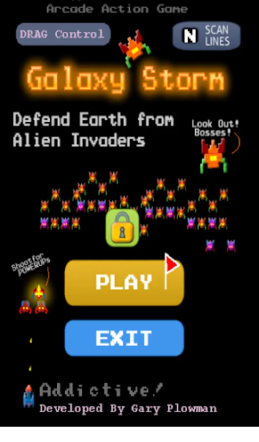Galaxy Storm is a Retro Space Shooter - Collect your bonus power-ups and use them to destroy the alien invaders from space and alien bosses!