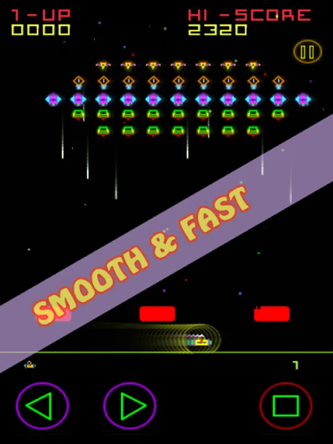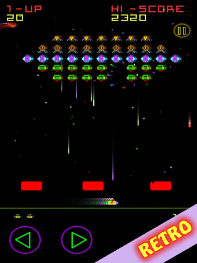 Classic Arcade Space Shooter - recreates that retro invaders 80s arcade shoot'em up feeling x 10. Defeat the invading aliens and save your planet.