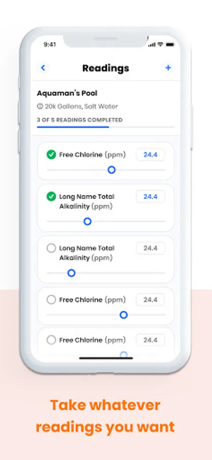 By default, you can adjust the chlorine, bromine, salt, pH, total alkalinity, calcium hardness, and even the cyanuric acid levels in all of your pools. You can even configure target ranges and chemicals used to treat the pools (see screenshots).