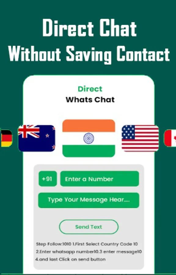 - Direct chat: chat directly with WhatsApp user without saving name in contacts.