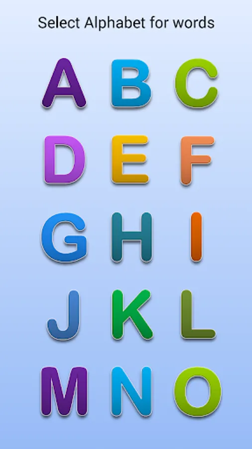 Added four words for each alphabet with images. Sounds are added to the each pictures for learning.