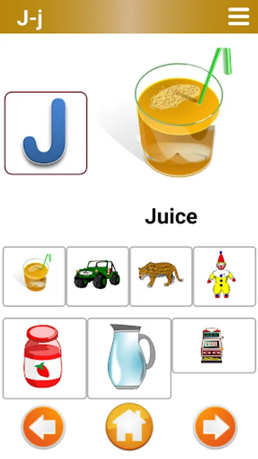 Alphabets are provided and below four words are provide. Click on each image, it will shows images and words. It pronounce sound on clicking. Also use next arrow to switch to next image. Use fast forward button to switch to next alphabets. This will improve the word pronunciation.