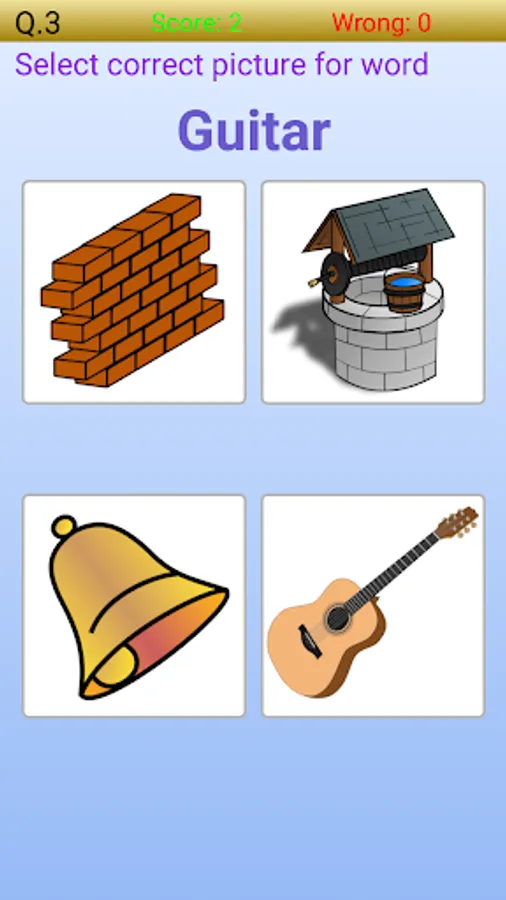 Within this area, ten questions are asked in each set. Picture are given in random order. Your score is added and stored will gets added as per date. User will view its score details as per dates.