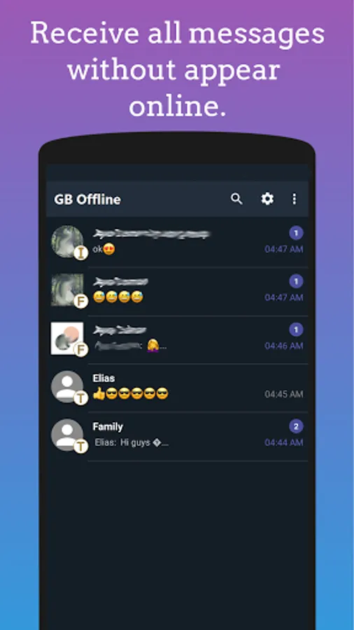 With GB Offline for Messenger, Telegram and Instagram stay hidden from others and check all messages secretly without appear online.