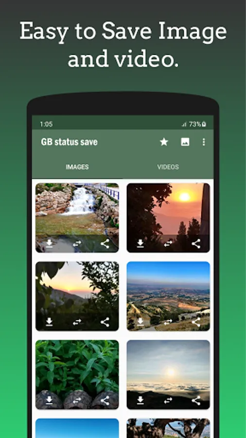 3- One click to save and share status.