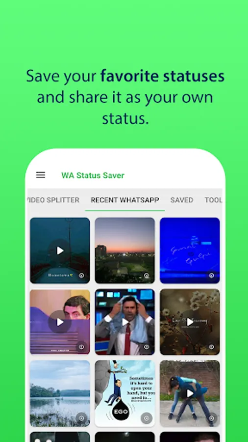- Save your families or friends WhatsApp status in just one click and also share with others.